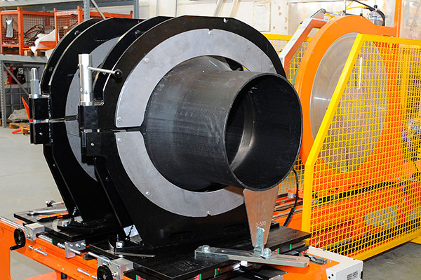Каждый нагревательный элемент выполнен из двух частей, которые могут быть легко заменены, для соответствия геометрии стыка. Обе каретки могут двигаться по ортогональным направлениям для обеспечения оптимального позиционирования сегментов труб при сварке. Поворотные зажимы позволяют производить колена из сегментов с разными углами. Благодаря конструкции зажимов очень мало времени требуется для загрузки, выравнивания сегментов и выгрузки готового фитинга.