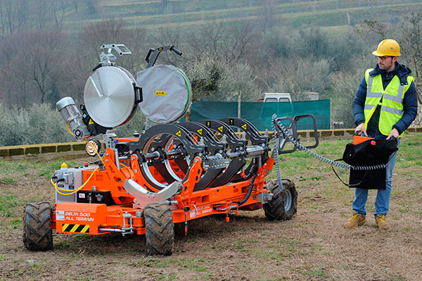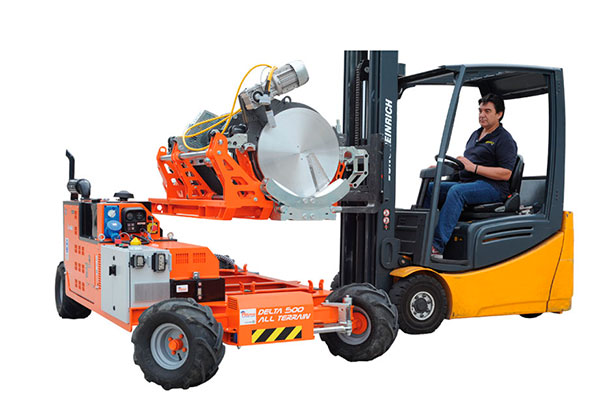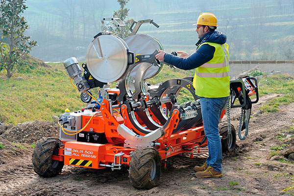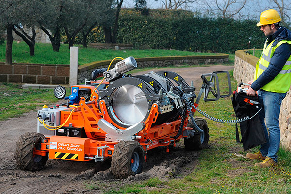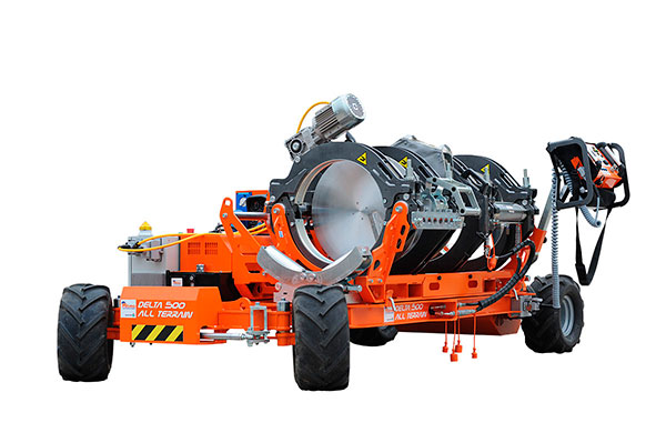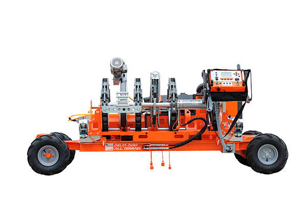 DELTA 500 ALL TERRAIN оснащен дизельным двигателем с низким уровнем вибрации и оснащен передними рулевыми колесами и задним тяговым механизмом. Машина подходит для сварки напорных труб (HDPE, PP) для транспортировки воды, газа и других жидкостей до Ø 500 мм (20 "IPS).