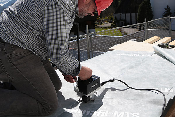 Сварочный автомат горячего клина WELDY MINIWELDER ROOF2 разработан для сварки тонких подкровельных полимерных мембран и пленок из ПВХ и ТПО (толщиной от 0,3 мм до 1 мм). Применяют при всех типах скатных крыш, плавная регулировка скорости, безопасная контактная сварка.