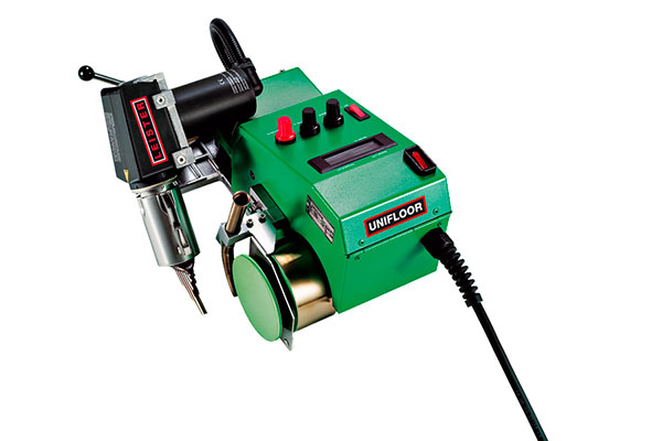 Сварочный автомат UNIFLOOR E для сварки напольных покрытий, имеющий цифровое управление и электронный контроль параметров непосредственно процесса сварки. Можно использовать для сварки разных типов напольных покрытий, имеет цифровой диспле, электронное управление, плавная регулировка расхода воздуха.